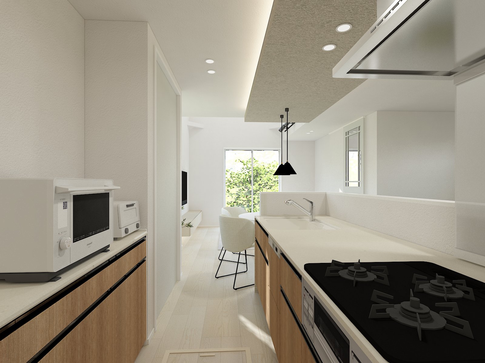 Ⅱ型キッチンが叶える、家族で並んで料理を楽しめるゆとりの作業空間。動きやすさが、毎日の料理をもっと快適に。