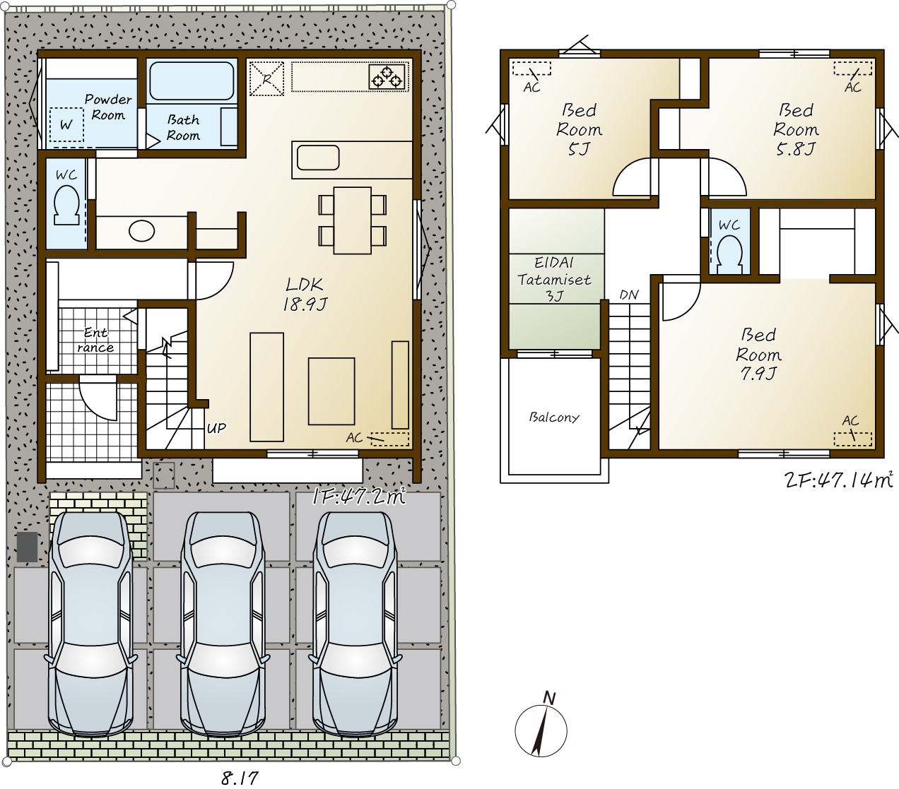 2号棟:93.34㎡(28.23坪)