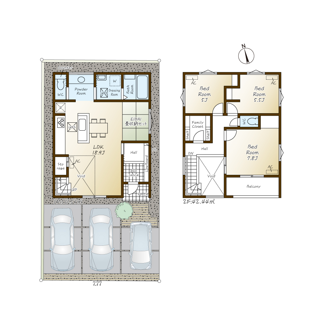 1号棟: 92.58㎡(28.11坪)